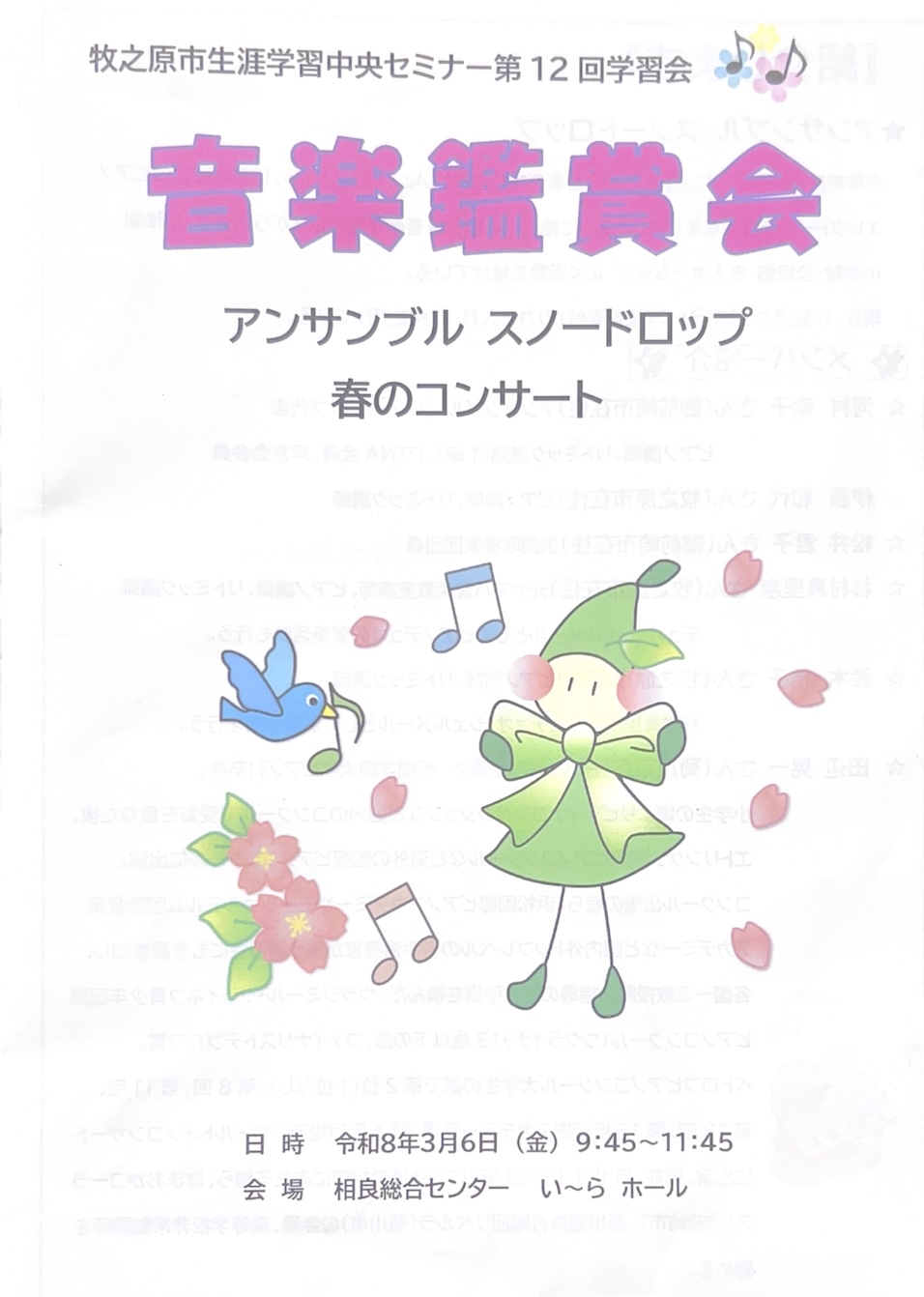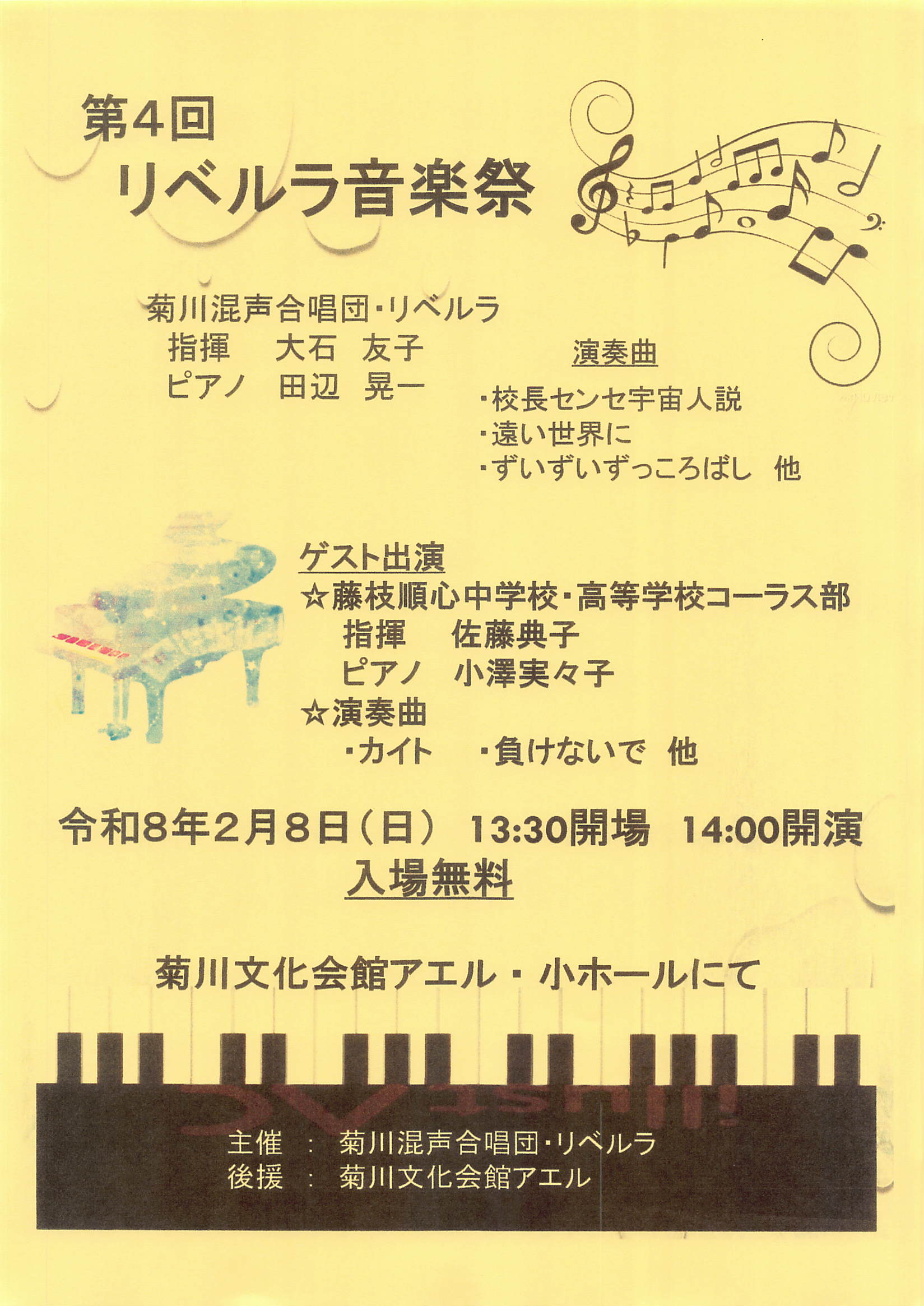 出演:菊川混声合唱団・リベルラ, 歓びの歌合唱団, 掛川市民オーケストラ, 大石真喜子, 佐藤典子, 石原久章, 大石陽介